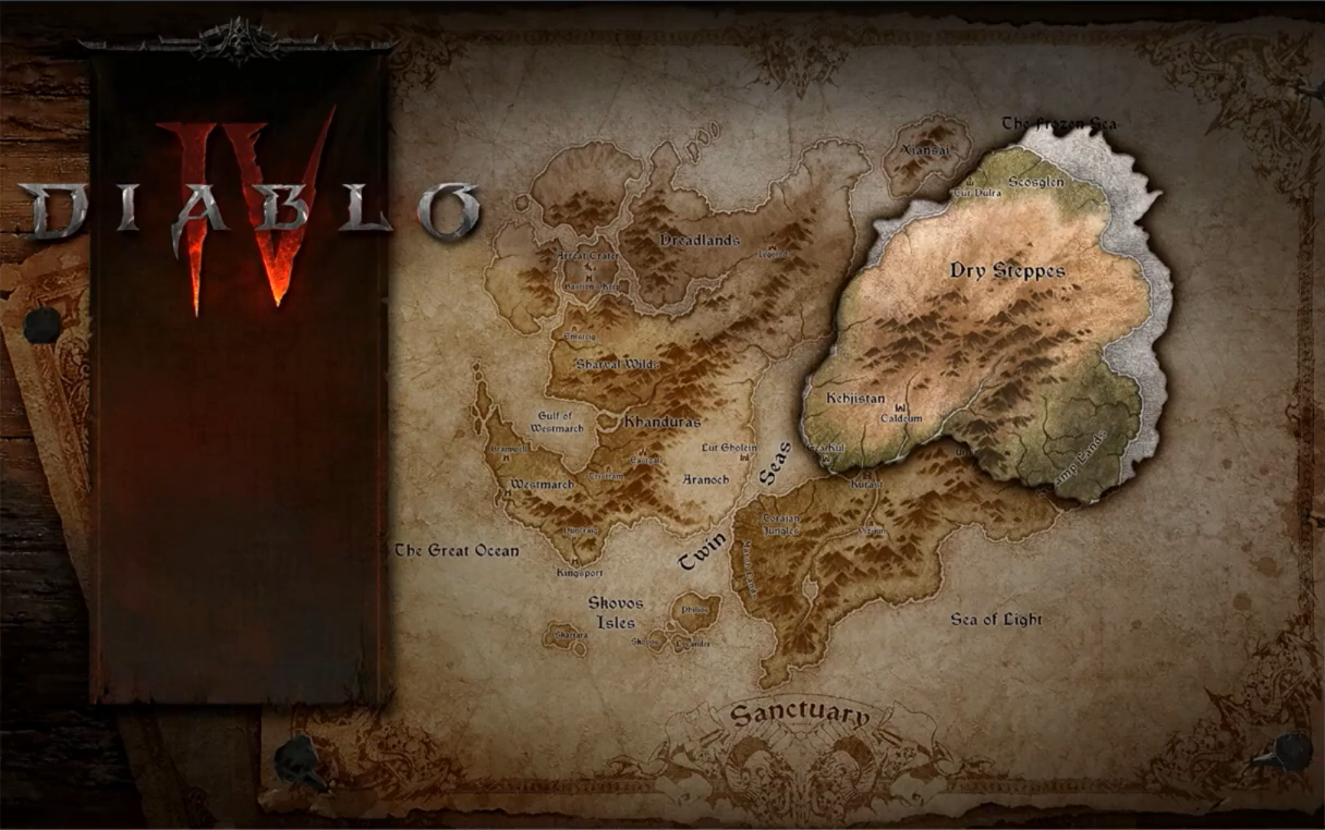 디아블로 4는 이전 시리즈들과는 다르게 오픈월드 형식이며 강제적으로 정해진 스토리만을 따라가는 것이 아니라 자유도를 높여 플레이어가 원하는 방식대로 플레이할 수 있게 한다고 한다. 그에 따라 맵의 넓이도 끝과 끝을 걸어가게 되면 분이 아닌 시간 단위로 걸릴 정도로 맵이 방대하다고 한다.