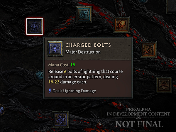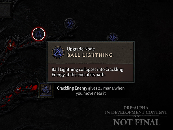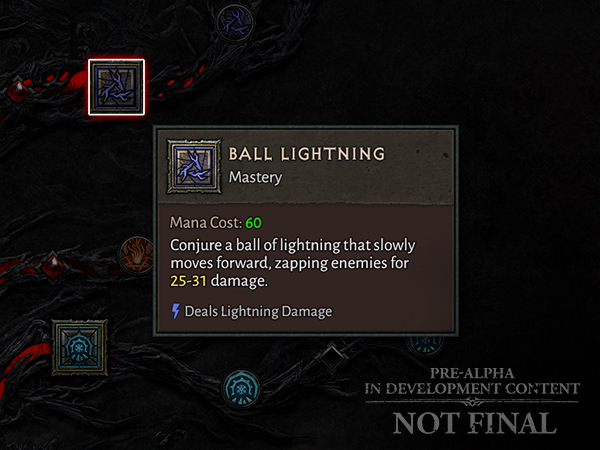Ball Lightnig 기술을 예로 들자면, 다른 직업과 달리 원소술사의 기술에는 두 가지 효과가 있으며 효과를 선택할 수 있다.